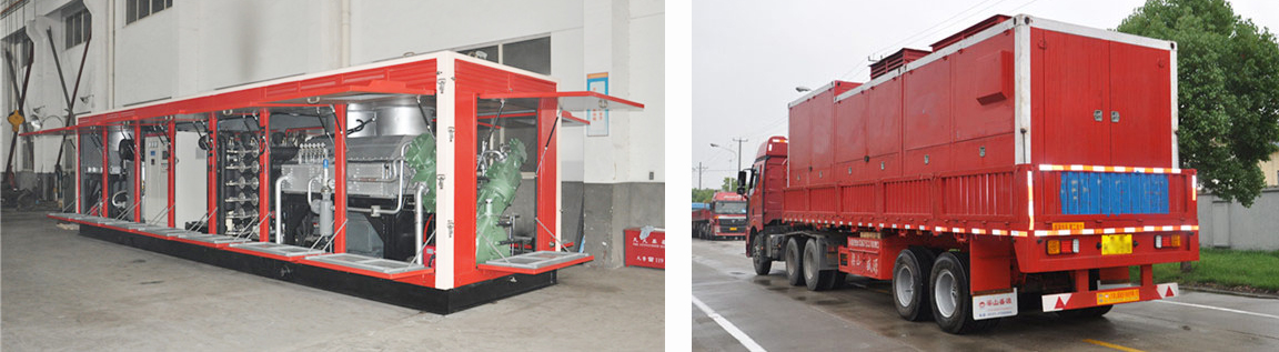 制氮系統(tǒng)設計成撬裝式,分別裝在二個撬塊上。系統(tǒng)分成三個模塊,螺桿低壓空氣壓縮機模塊,膜制氮系統(tǒng)模塊,高壓氮氣增壓壓縮機模塊。螺桿低壓空氣壓縮機模塊和膜制氮系統(tǒng)模塊裝在一個撬塊上,高壓氮氣增壓機系統(tǒng)在另一個撬塊上。系統(tǒng)采用風冷式,柴油機驅(qū)動,撬塊配有金屬罩殼,可方便安裝在汽車的底盤上,特別適用于油田野外作業(yè)。